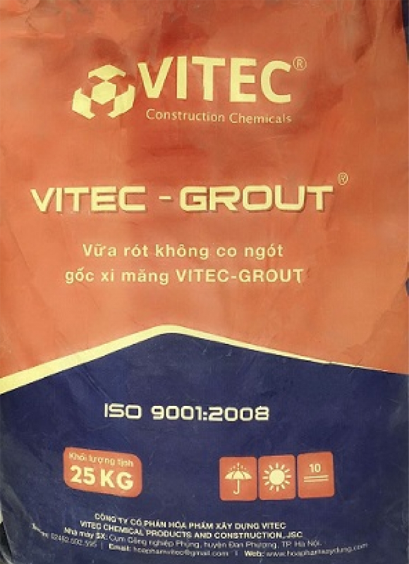 VITEC GROUT là vữa tự chảy không co ngót, tính năng cao, thời gian cho phép thi công lâu, được dùng để sửa chữa các cấu kiện bê tông bị rỗng, rỗ, hỏng, lấp kín các khe hở trong cấu kiện bê tông đúc sẵn, đổ vữa bệ gối cầu, móng máy, chân cột, neo ống cáp, định vị các bu lông và tất cả những nơi yêu cầu loại vữa không co ngót.